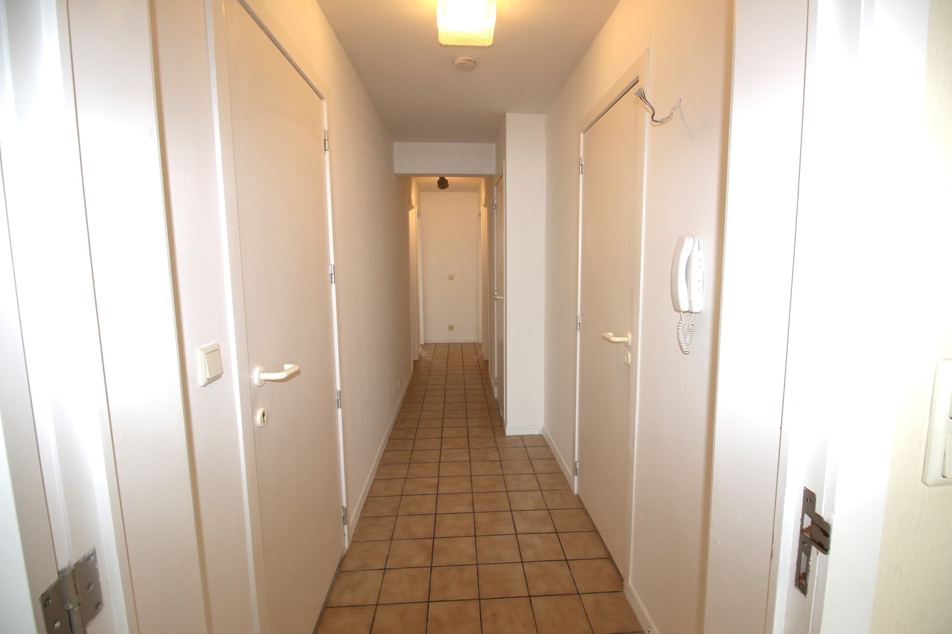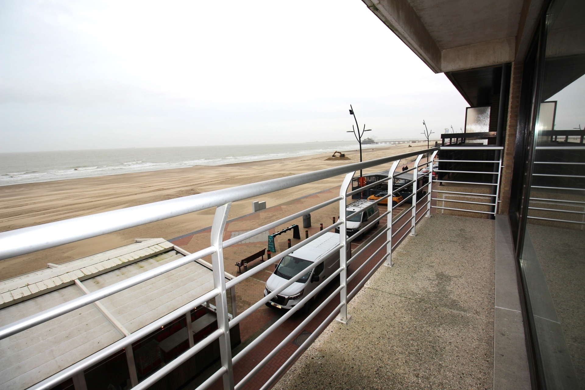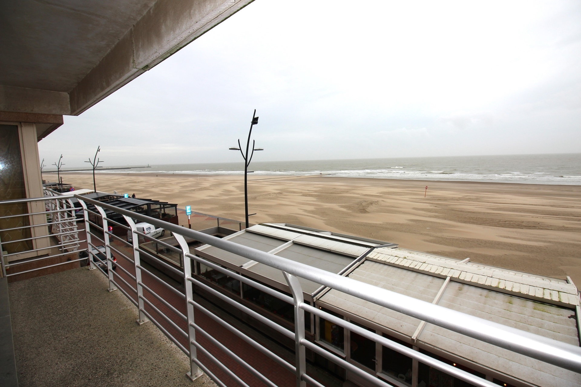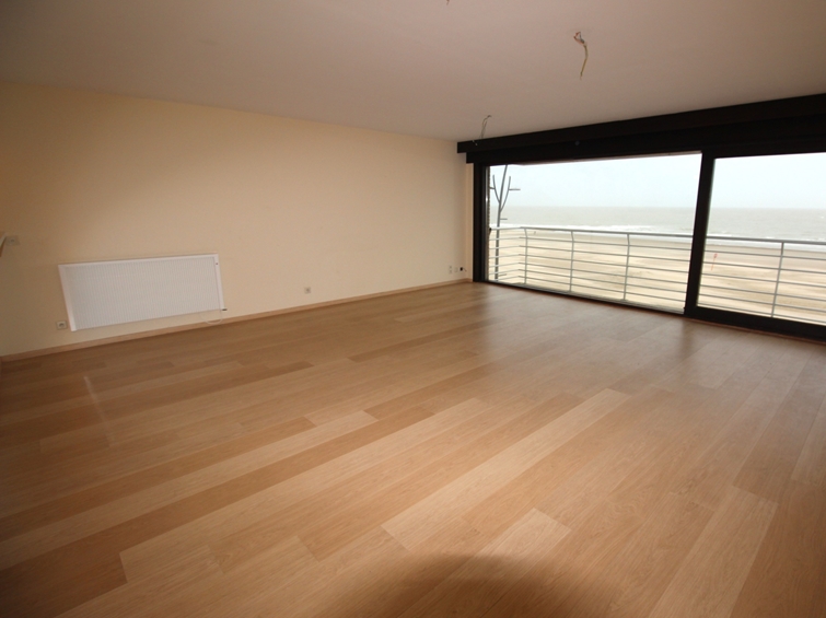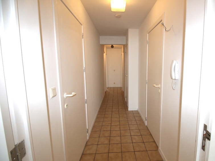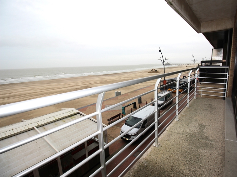 Indeling: Inkom - zeer ruime living met halfopen keuken (oven - microgolf - koelkast - vaatwasser - kookplaat - dampkap) - terras vooraan met frontaal zeezicht - toilet apart - badkamer met wastafel & inloopdouche - berging met binnenraam: warmwater boiler & aansluiting voor wasmachine & zekeringkast - slaapkamer 1 - slaapkamer 2 - terras achteraan met 2x bergkast en toegang tot brandtrap. Privatieve kelder op -1. Mogelijkheid om een staanplaats voor 1 wagen aan te kopen onderaan de residentie, ingang via Franchommelaan (achterkant Zeedijk).